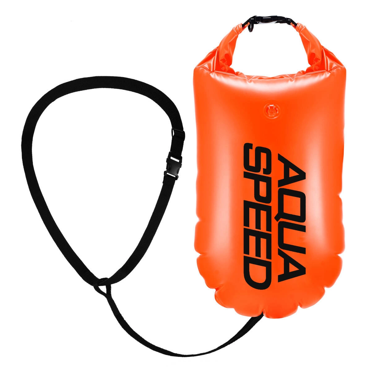 Bojka asekuracyjna AQUA SPEED jest przeznaczona dla osób pływających na wodach otwartych. Łączy funkcję boi oraz wodoszczelnego worka na podręczny bagaż (klucze, portfel, telefon, ręcznik). Maksymalne obciążenie nie powinno przekraczać 0,5 kg.